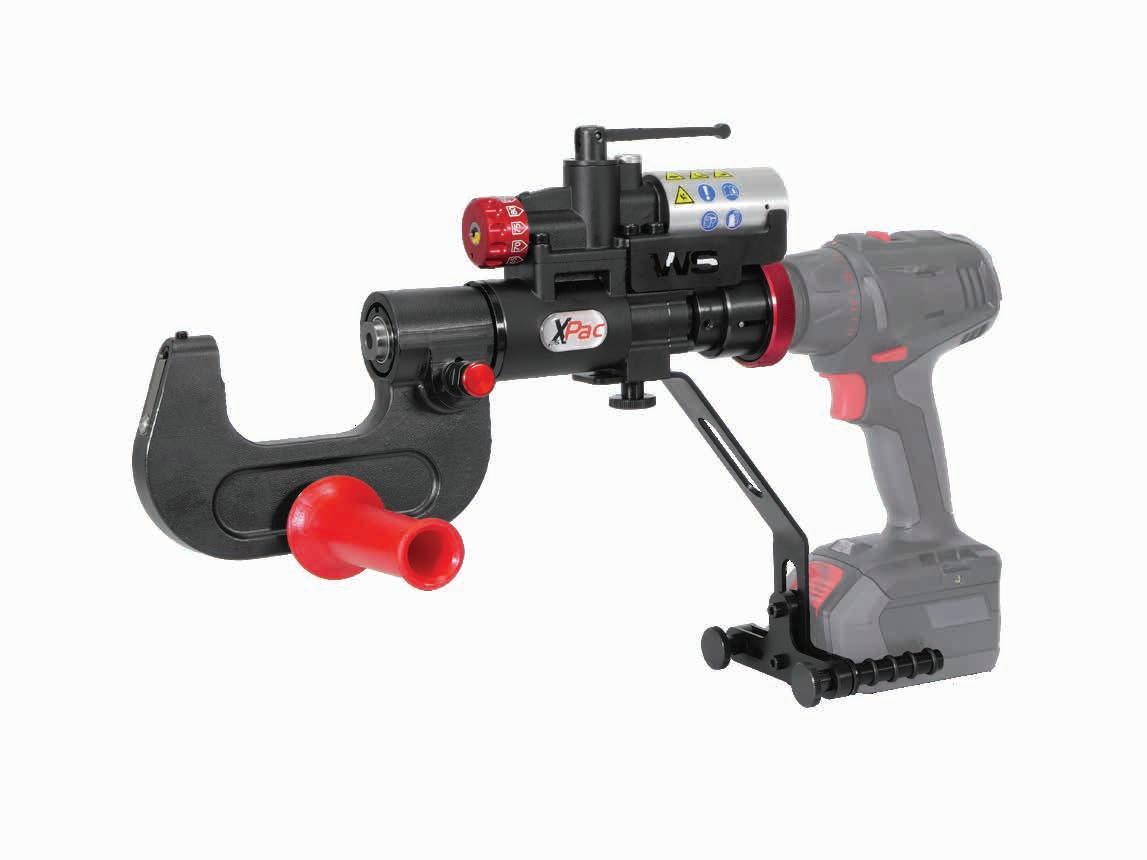 Opmerking: Accu-schroevendraaier/boormachine is niet bij de levering inbegrepen Afmetingen 240x62x130 mm Hoogte incl. torsiebeugel 290 mm Gewicht kpl. 3.41 Kg Olievolume 60 cm3 Perskracht 25 kN - 80 kN Cilinderslag 25 mm Vereist toerental 1250 - 1500 omw/min Benodigd koppel 12.5 Nm modulairuitbreidbaar approval *Met de technische minimumeisen van een koppel van > 12,5 Nm en een toerental van 1250 - 1500 omw/min
