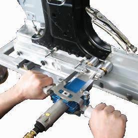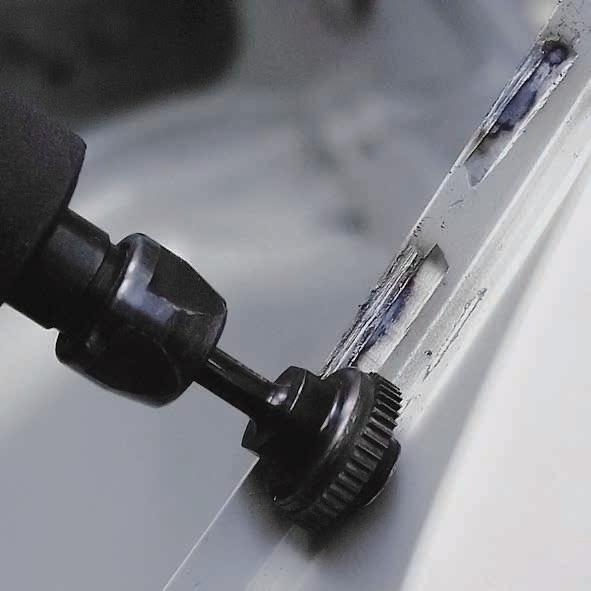 De verstelbare geleider van de frees zorgt voor een snelle en eenvoudige aanpassing van de MEC600 aan verschillende hoekposities van de carrosseriepanelen.