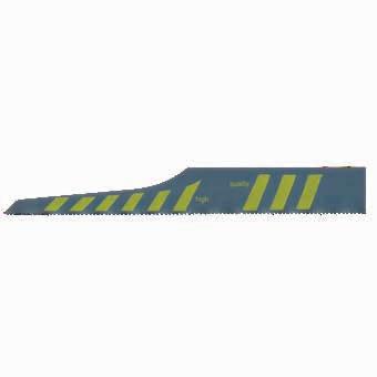 Slag Vermogen Trilling Slagsnelheid Gewicht Lengte 20 mm 400 W 27 m/s2 7.000 spm 1,28 kg 290 mm *tpi = tanden per inch Artikel nr. Tpi* Artikel L=mm Toepassing Aantal 197024 10 M42 130 Aluminium, composiet 1 st. 197025 10 M42 100 Aluminium,