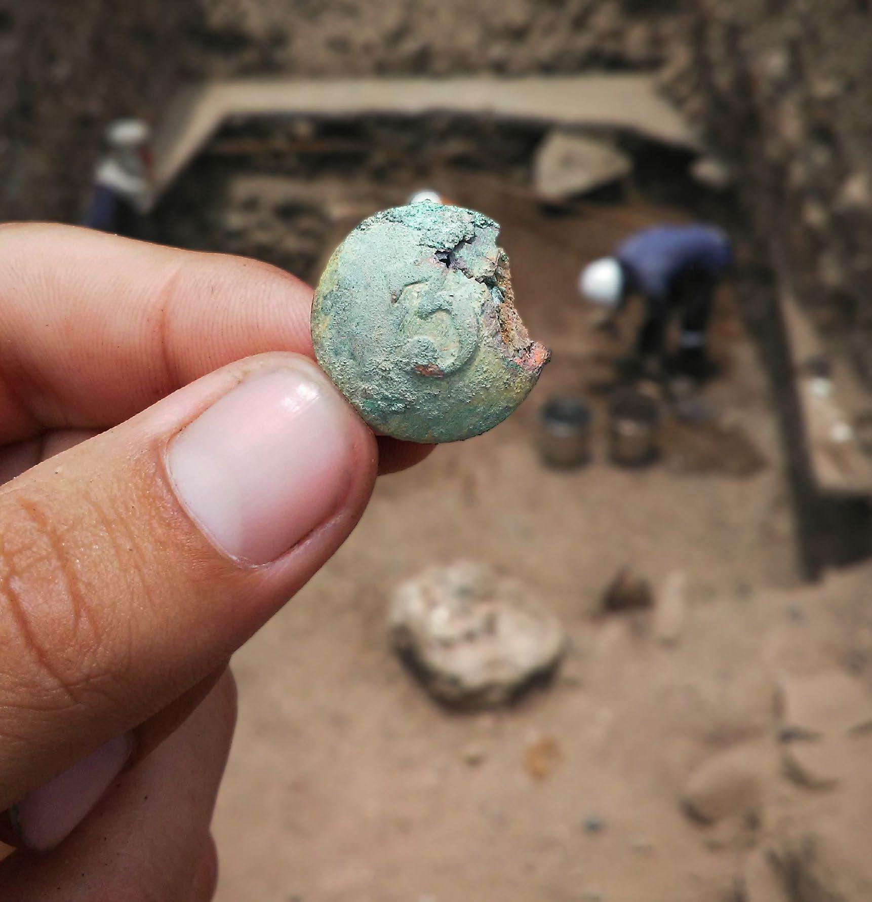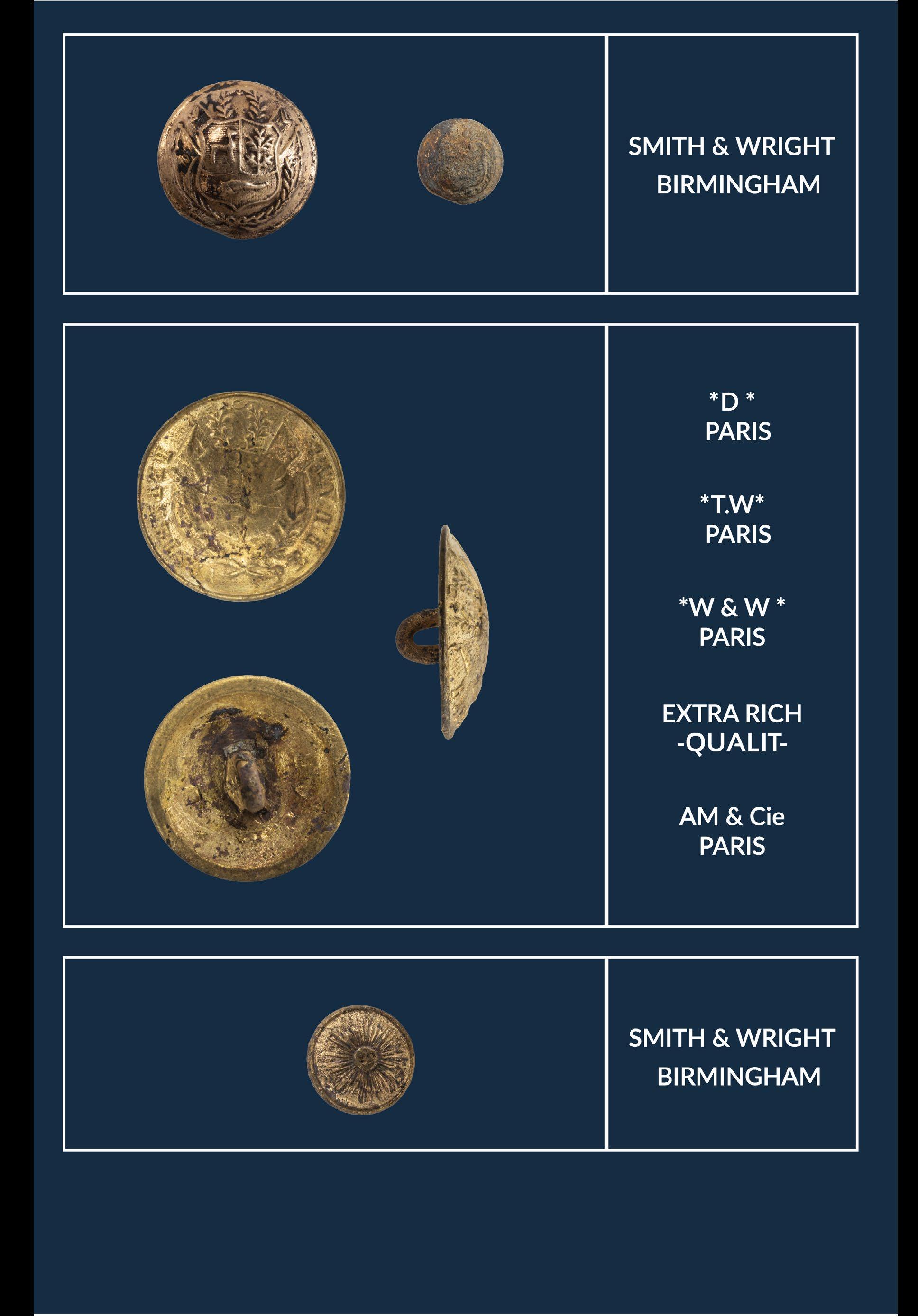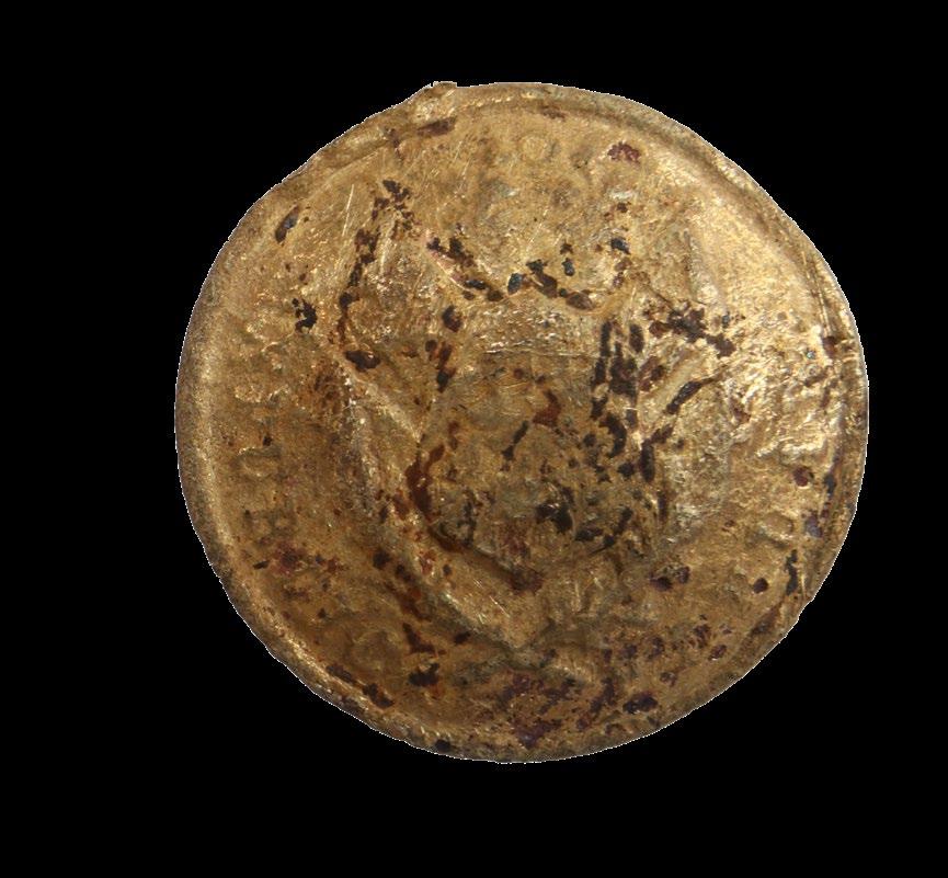 fuente importante para el estudio de los uniformes militares y las fábricas asociadas a su producción. Junto con este material, se identificaron diversas hebillas metálicas, monedas, cuchillos y munición de diverso tipo y calibre. Todo este contexto, además de otros indicadores, nos señalan claramente que nos encontraríamos ante una huella de la ocupación militar chilena en Lima.