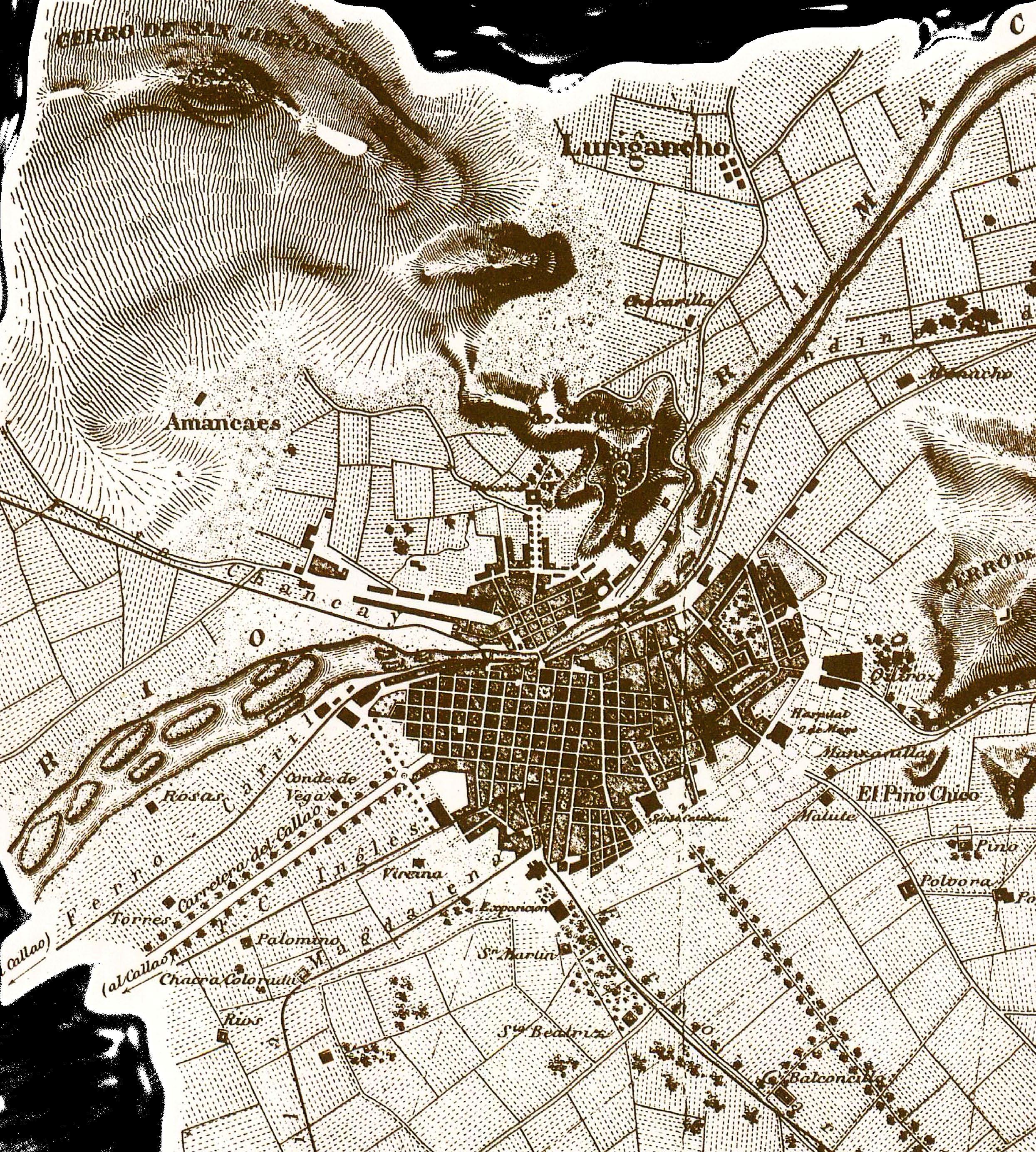 fuego de artillería las vías de aproximación a Lima desde el sur. Este sistema consistía en instalar cañones artillería en tres cerros: San Cristóbal 7 , San Bartolomé y Vásquez. En el cerro San Cristóbal,