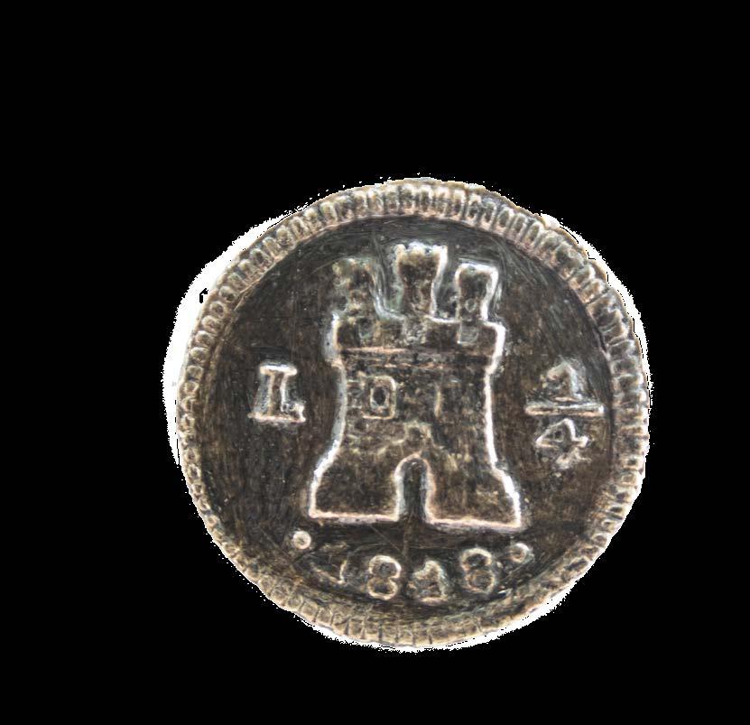 Moneda de un cuartillo de plata, acuñado en 1818, en la ceca de Lima. Foto: Equipo de Arqueología de Lima.