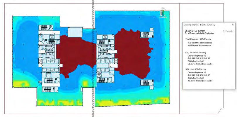 CORE + SHELL | 88 BLUXOME 5 88 BLUXOME STREET 2020.01. SS credit 1 - Site Selection EVALUATION BOUNDARY SECTION 19 EQc8.1 - opt 1 Indoor Environmental Quality Daylight POSSIBLE POINTS = 1 Intent To provide building occupants with a connection between indoor spaces and the outdoors through the introduction of daylight and views into the regularly occupied areas of the building. Requirements Through 1 of the 4 options, achieve daylighting in at least the following spaces1: Regularly Occupied Spaces must have min 75% daylighting POINTS ACHIEVED = 0 LEVEL 8 PLAN ANALYSIS WITH AUTO SHADES - 72” GRID HIGH RES (12” GRID)