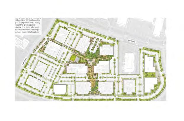 Create a green, pedestrian inegrated campus from what was a car-centric office park