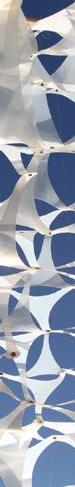 The archetype of Pavilion requires the architecture to be “about itself” in terms of materiality, construction, and experience - not about context. This pavilion took it’s inspiration from the wind; of experiencing the flow of fabrics in light and shadow, billowing in through the skin pushing and pulling on the stiffened fabrics, whispering audiblly as it blows, of light filtering in through the ribbon canopy above. There is an inviting harmony and energy captured by the material, an awareness of caressing movement perceptible with your eyes closed, feeling ribbons of warmth and light move across your skin and eyelids.