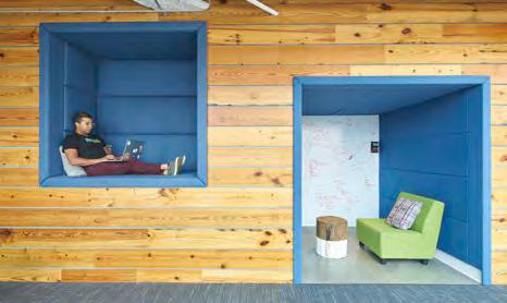 Where do you listen to music? On a roadtrip, in a treehouse, or at a DJ booth? Whimsical vignettes characterize Pandora’s workplace Interiors in downtown Oakland.