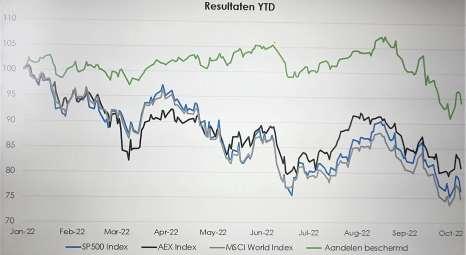 goedemogelijkheden,vindtVerkamman Hijiszelfzeertesprekenoverver mogensbeheermetbescherming „Dat dektneerwaartsebeursrisico’s,zoals crashes,grotendeelsaf.Deportefeuille komtbijherstelvandemarktsnellerin deplusdanbijtraditioneelvermogens beheer Ziedegrafiek(stand:10-10-2022): SP500: 23.64%;AEX:-18.90%;MSCI World:-25.19%;aandelenbeschermd: -5.87%.Hetgevolgvanvermogensbeheer metbeschermingisdus:hogerrende mentoplangetermijnenmeerrust.Blijf opkoersmetBeleggen+.”