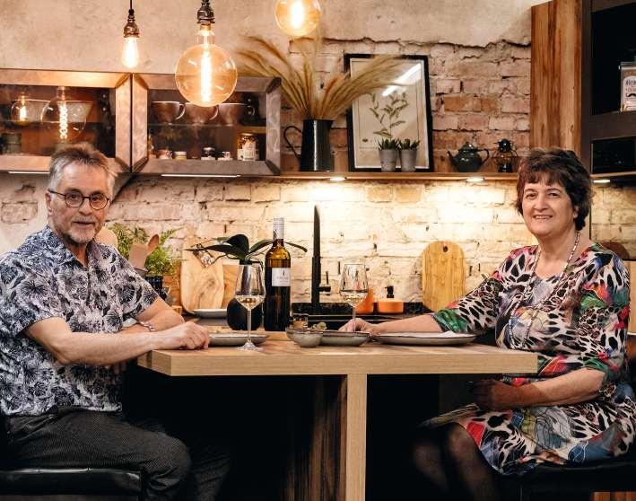 MaarwaarkomtdieFransenaamvan hetkeukenbedrijftochvandaan?Henk lacht:„Datiswaarook.Bijdeoprichting rundenwealeenwijnkoperij,Vind’Oc. DatkwamdoordateenzusvanNellie indeFranseLanguedocgingwonen. Misschienwelhetmooistewijngebied terwereld.Haarmanenzijkwamenals vanzelfindewijnmakerijterecht.Om hunwijneninNederlandopdemarkt tebrengen,haddenzeeenimporteur indienst,maardatliepnietzo Opeen gegevenmomentvroegzeofwijhet wildenovernemen.Nietgehinderddoor enigekennisvanwijnzeidenweja.” Henkbeslootalsneleenuitgebreide wijncursustevolgenengingdaarna, samenmetNellie,wijnproeverijen bijgroothandelsinNederlandenbij chateausinFrankrijkaf.Nellie:„Watwe allebeilekkervindenenwatquaprijsbij dedoelgroeppast,kopenwein:rood, wit,rosé,echtvanalles.”Dieaanpak werktkennelijkgoed,wantdeaanvragen opvindoc.nlstromenbinnen.