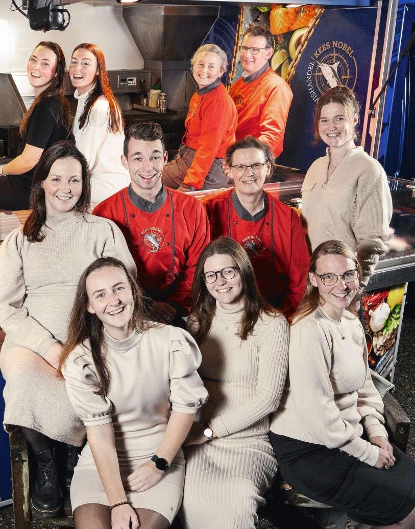 We hebben in de jaren veel bijgeleerd. Toen we voor het eerst op vlaggetjesdag in Stellendam stonden, wisten we niet wat we meemaakten Het stond er rijen dik met klanten Kees heeft toen zo hard gewerkt, dat hij die avond 3 kilo minder woog. In een familiebedrijf weet je wat je aan elkaar hebt: we kunnen alles tegen elkaar zeggen en kennen elkaar door en door Dat maakt het samenwerken leuk en gezellig. Bijvoorbeeld als er nieuwe soorten salades gemaakt zijn: die proeven we altijd voor met het hele gezin Op verjaardagen gaat het af en toe over het bedrijf – en altijd op een leuke manier. Familietradities hebben we ook: op zaterdagmiddag eten we als familie samen met iedereen die die dag meewerkt: allemaal krijgen ze patat met kibbeling. Het is altijd een gezellige afsluiting van onze werkweek