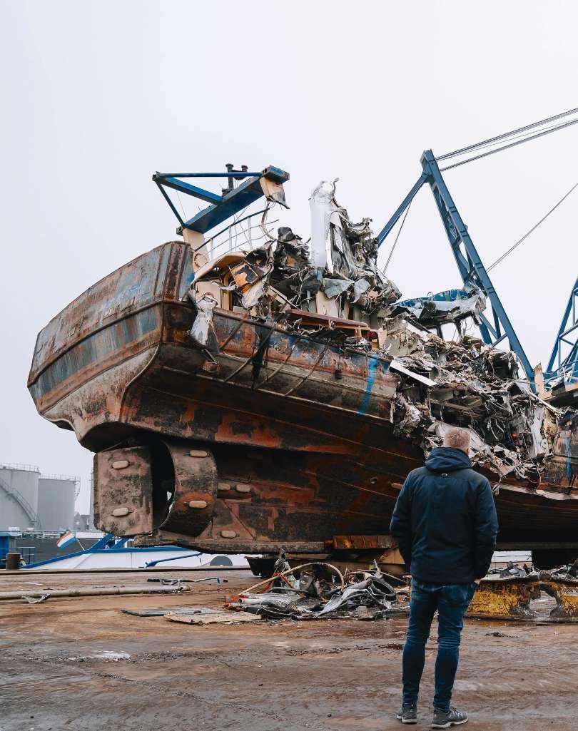 Urker visser Jan de Boer ziet met eigen ogen hoe zijn schip bij de sloper aan diggelen gaat