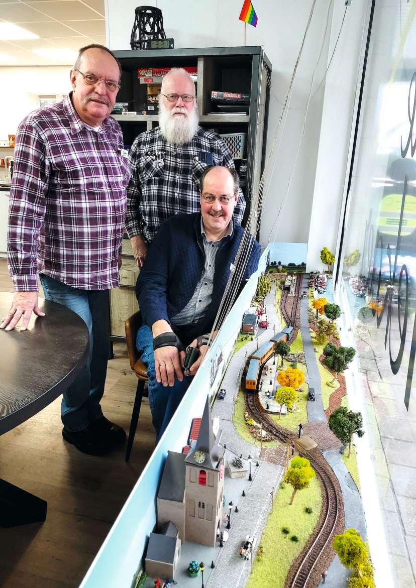 BijLeoHamelinck,AdGoudenDréJansenbrandteen andervuur:hetHoeksetrioisbeheptmethetmodelspoorbaanvirus.Weljammerdatdebanennaiedere bijeenkomstspoorloosmoetenverdwijnen,omdatbuurthuis”MetMekaer”inStrijenbijmeerdereorganisatiesin gebruikis.Mensendievergetenmodelspoorspullenop zolderhebbenliggen,krijgengratisgoederaad:„Gooihet nooitweg Brenghetlangs,wijkijkenhetgratisna.”