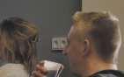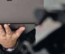 Lindaopentdeschuurdeuromhaarwerkplektelaten zienenpakteenboomschijf.„Eerstplakikhemvolmet doorzichtigetape,danspuitikheminmetlijmspray, vervolgensplakikhetvoorbeelderop,datikweerafplakmettape,zodathetnietverschuift.Datkanikecht niethebbenbijzulkefijnepatronen.”