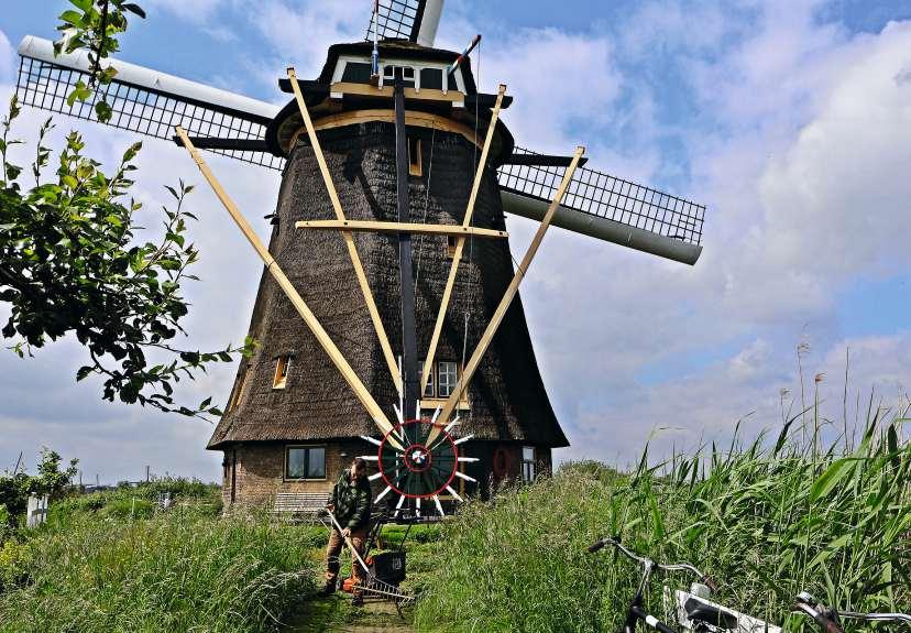 Eenkilometerof100naarhetnoordoostendromenJaco deVries(19)enRikKlapwijk(26)uitKinderdijkookvan eensoort”natuurlijkeinvulling”vanhunleven:zezouden graageeneigenmolenbezitten.Liefstdievanhunvoorgeslacht.Rik,zoonvandeeigenaarvandeHogeMolenin Nieuw-Lekkerland:„Ikvoeleensoortverbondenheidmet mijnopa,diein2013overleed.BijhetwerkenopdeHoge Molentreedikletterlijkinzijnvoetsporen.”