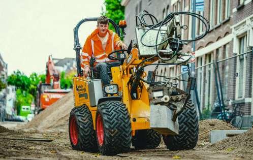 Bestratingen, vertelt: ‘Wedoe werk en leren tegelijkertijd veel. ik afgelopen periode aan het w geweest op een groot projecti Hoekvan Holland.Hier hebben we verschillende woonwijkenopnieuw bestraat. Wathieraan mooi was, wasdat we het heleproject uitvoerdenmet enkel elektrisch materieel.Hierdoor werken we duurzaam en innovatief.Zozijn we als grijs bedrijf,ook groen!’