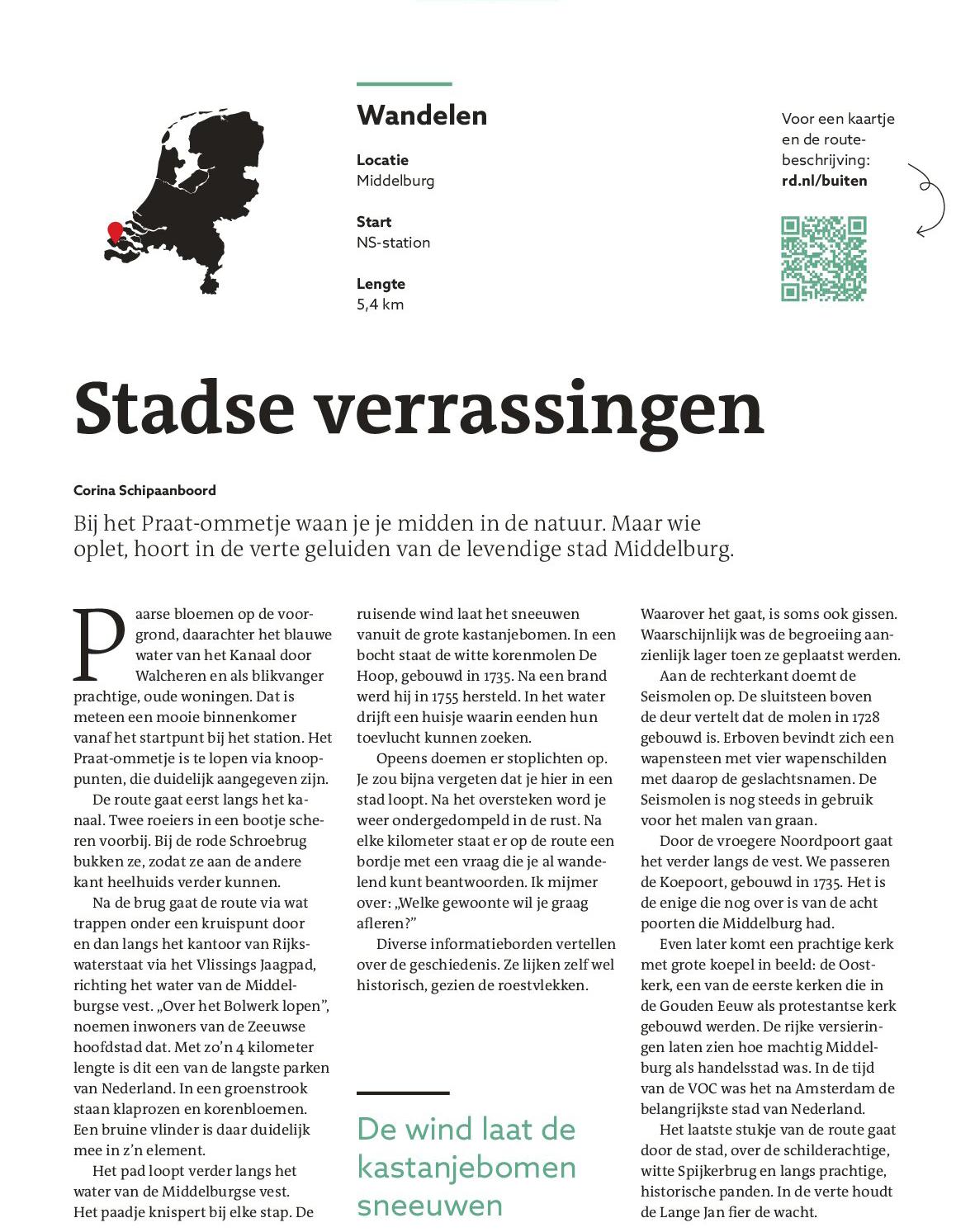 In dit digitale magazine vindt u negen voorjaarswandelingen verspreid over heel Nederland. Ontdek de combinatie van cultuur en natuur: van de verstilde schoonheid in een Zeeuws hoekje tot een stadswandeling in het midden van het land.