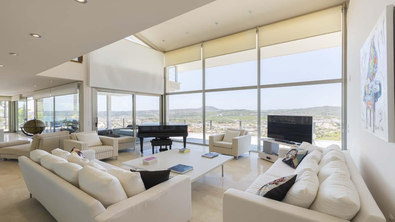 Modern and filled with natural light, this villa on the exclusive La Corona hillside enjoys spectacular panoramic views of the Mediterranean. Its contemporary architecture, defined by noble materials and expansive windows, opens every space seamlessly to the landscape. With generous terraces and an elegant design, it embodies Mediterranean luxury just minutes from the sea and the marina.