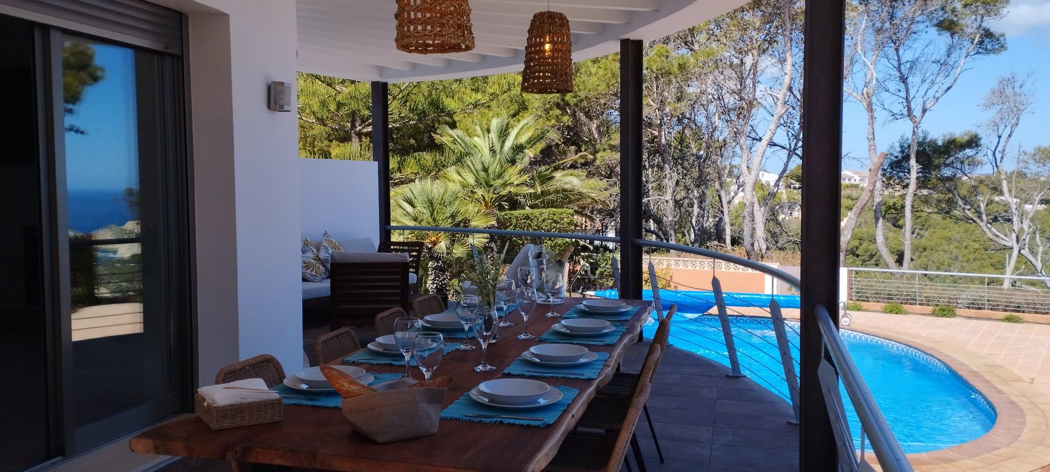 Esta villa ofrece vistas espectaculares al mar y a la isla del Portichol, a solo unos minutos a pie de la Cala de la Barraca. Reformada con un estilo actual, conecta sus espacios principales con amplias terrazas que enmarcan el Mediterráneo. La zona exterior, con cocina de verano y piscina rodeada de rincones tranquilos, invita a disfrutar del clima durante todo el año. Con una ubicación elevada, privacidad y vistas abiertas al mar y la montaña, es una propiedad perfecta para vivir el estilo mediterráneo en uno de los enclaves más buscados de Jávea.