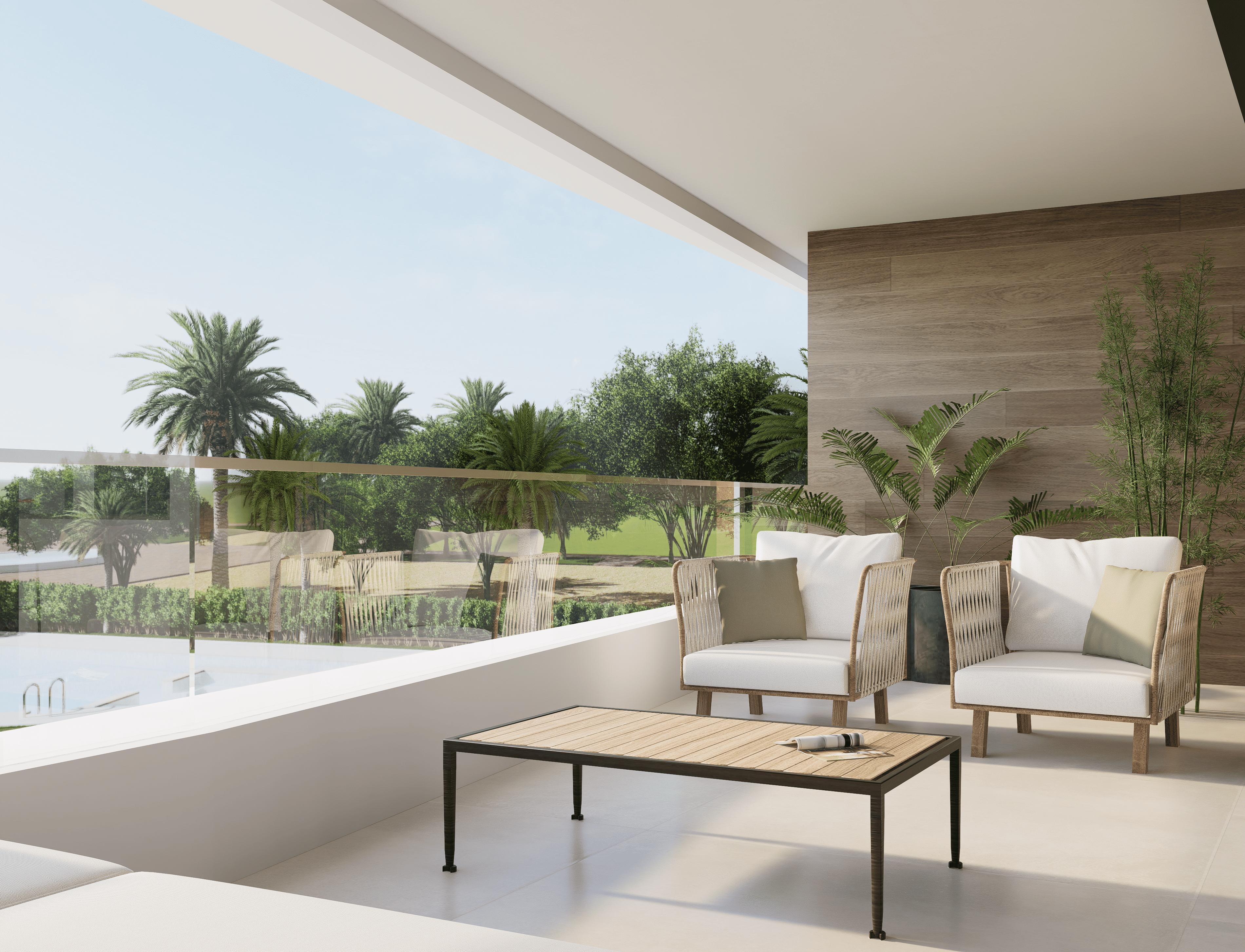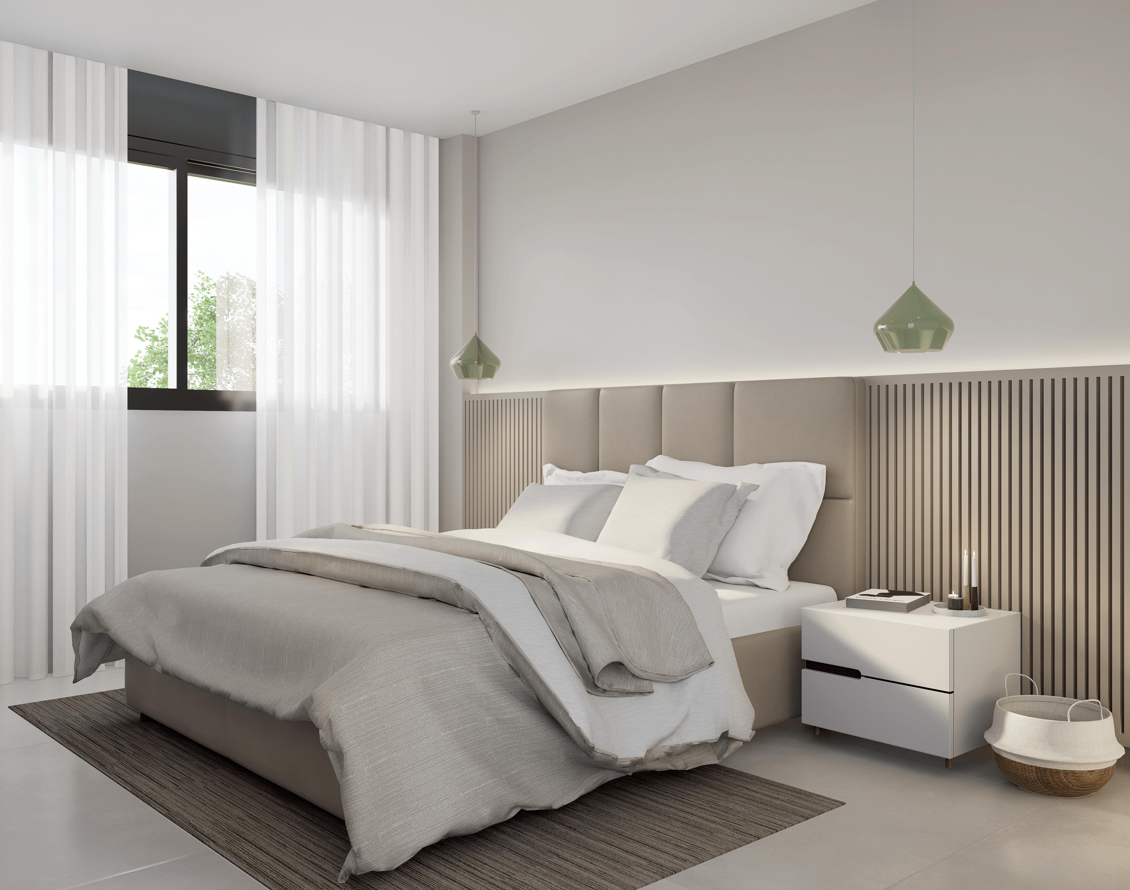 Modern 2 and 3-bedroom and bathroom apartments in Jávea Beach, a private residential complex next to Arenal Beach, featuring bright interiors, large terraces and communal areas with a swimming pool, gardens and relaxation spaces, designed both for year-round living and as a second home by the Mediterranean. The complex includes ground-floor options with private terraces and penthouses with solariums, ideal for those seeking more outdoor space and open views.