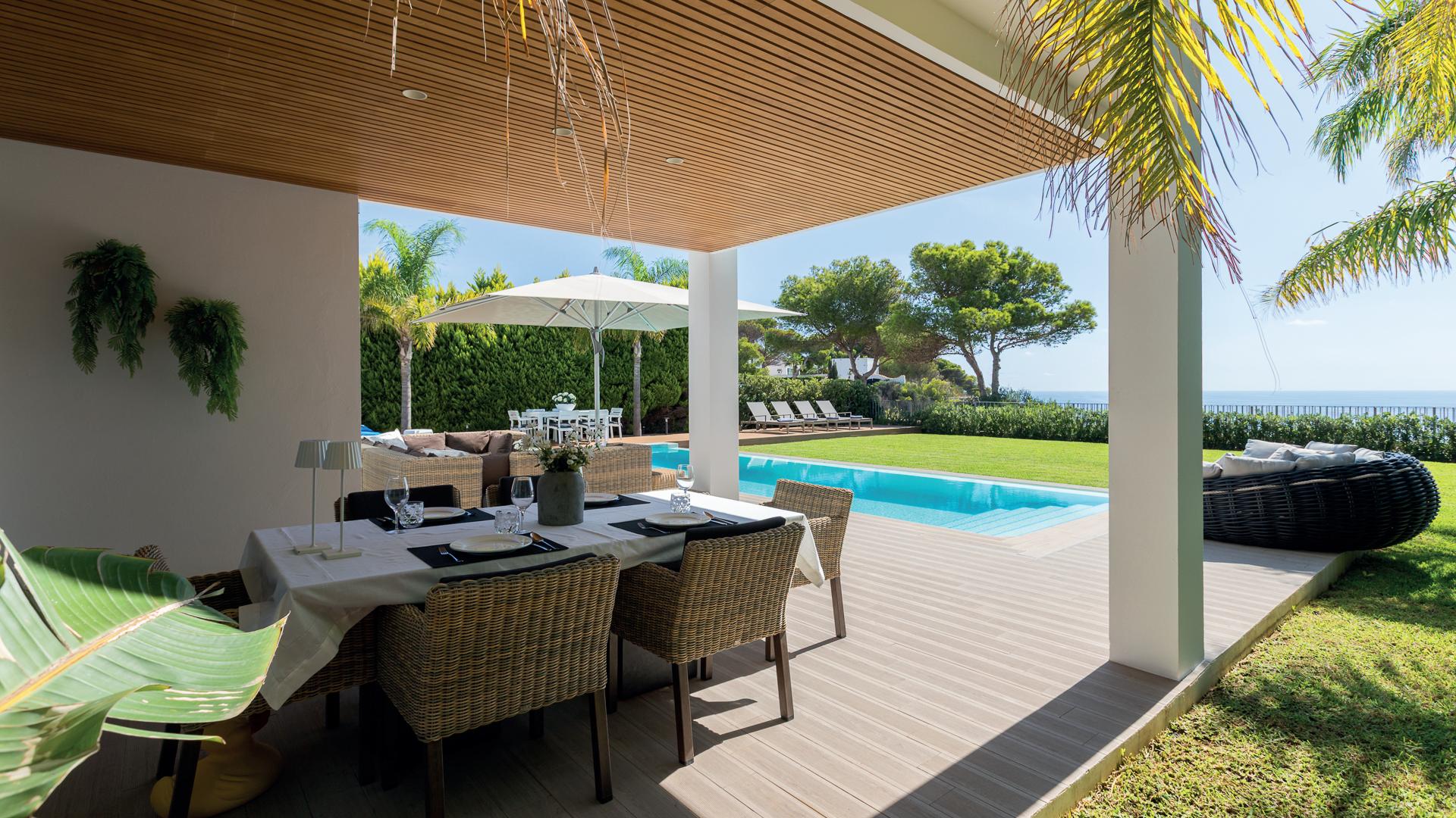 Esta villa de lujo en La Siesta destaca por su posición en primera línea y sus impresionantes vistas al mar. Su diseño combina luz, amplitud y un ambiente cálido gracias a una distribución abierta que conecta la cocina, el salón con chimenea y las zonas exteriores. Rodeada de privacidad y situada en un enclave exclusivo, es una propiedad que permite disfrutar del Mediterráneo en su máxima expresión.
