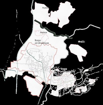 The Abu-Nar stream lies at the southern boundary of Baqa, where beyond this stream there is a 1000 donum valley.Mainly an agricultural area that lies between Baqa and Jat and its in shared ownership of citizens of both cities.The stream meanwhile functions as a physical barrier that people cannot cross to reach to the valley except from three points that are made for cars only , leaving the valley area as the neglected rear space of both cities.PASSIACTIVE WALL is the Barriential to my definition,it is a shared area in the middle of two settlements, and if we look at the other boundaries, they have a bigger space to expand to,but because of the current situation it can`t. this valley area has the most potential for turning into the first urban public area and promenade for baqa al-Gharbiyye and Jat.