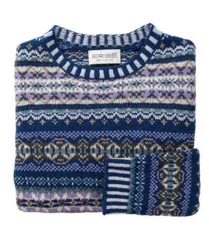 An ultra soft, colourful Fairisle Sweater made with a premium, ultra-soft superfine merino lambswool. Featuring distinctive striped trims and graphic motifs from traditional hand-knitted Shetland Fairisles. Authentic floats on the inside of the garment provide a layer of extra warmth.