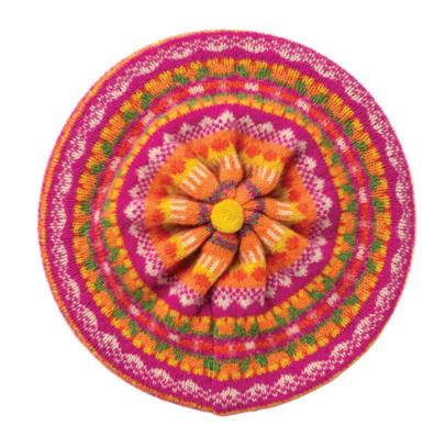 Circular knit Fairisle beret which can be worn like a beanie or in true French style.