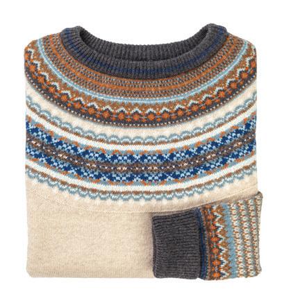 With more than a nod to nostalgia, this Collection is inspired by Fairisle designs and handknit techniques from Shetland, in the far North East of Scotland. Made with a modern version of Shetland wool for a contemporary Scottish look and feel. The wonderful wool moulds to your body shape over time or size up if you prefer a loose fit. These authentic Scottish garments are made in Scotland in our own factory.