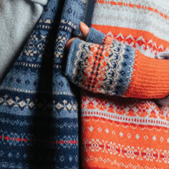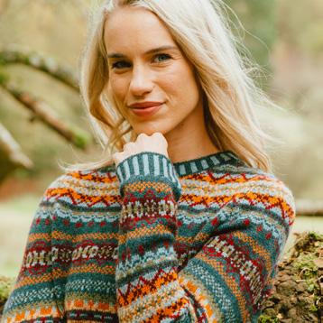 The Alpine is a stylish, colourful, cosy knit, rich in Scottish history offering a modern vibrant approach in its colours. An eye-catching addition to your store’s interior layout. Customers love the comfort and luxury of the fine micron, woollen spun Merino yarn, the meticulous attention to detail, unique number of colours and construction of the beautiful Fairisle yoke. The design inspiration for this collection comes from late 18th century handknit found in the very North of Scotland. The design is technically complex requiring high levels of hand skills.