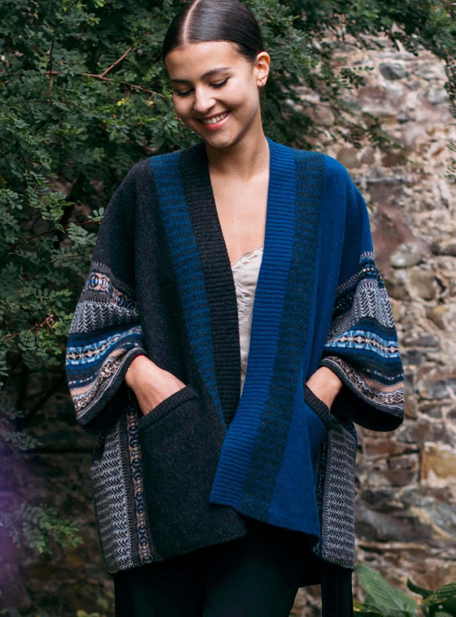 Inspired by the natural beauty of our Scottish landscape and traditional patterns from Shetland and Fair Isle. Kinross garments are lovingly made with a premium ultra-soft superfine merino lambswool that feels like cashmere - soft and lightweight. Kinross styles combine traditional techniques with signature ERIBÉ colouring to create contemporary statement pieces that stand out from the crowd.