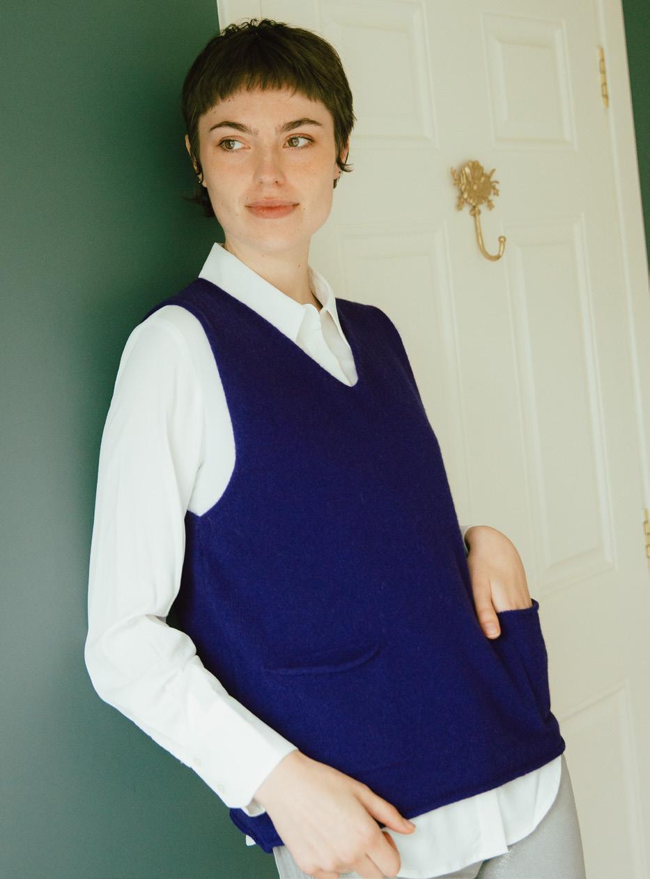 A vintage inspired regular fit, vee neck waistcoat that gives a stylish, flattering effect due to the long rib hem that hugs the hips. It feels like soft cashmere, while slightly thicker than the Corry collection.