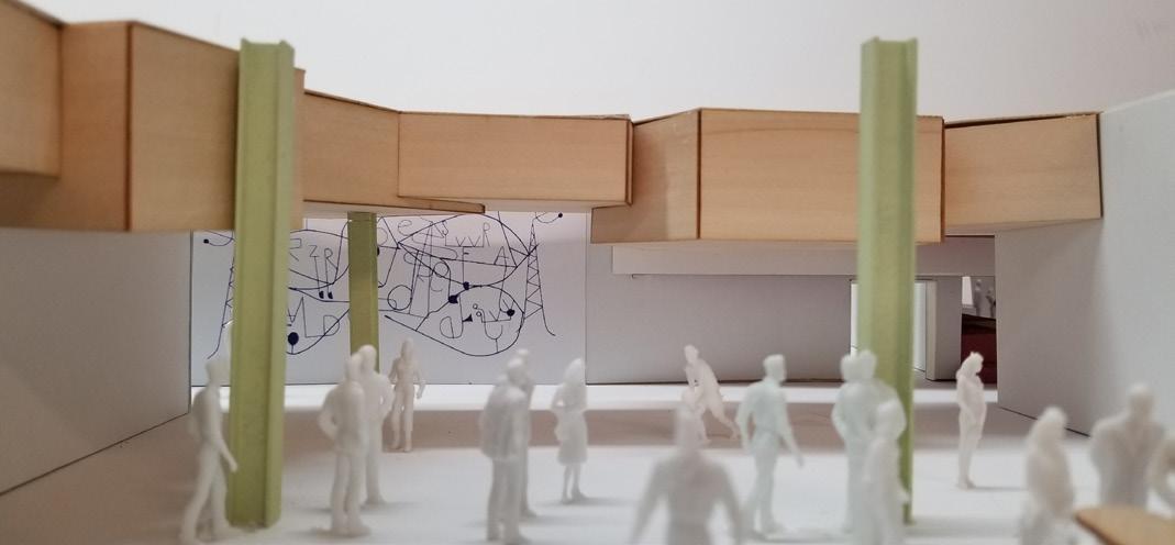 This is a proposal for an industrial history museum for the city of Muncie. Its programing focuses on the city’s past as a regional center for manufacturing and its subsequent deindustrialization as a typical example of Midwest rustbeltification. This project imagines possible new spaces that emerge from interactions between already existing forms. It interprets the existing context as a catalog of available forms, borrowing them to create something new. This project takes contextual typologies and arranges them in compositions similar to those a child would make with a bunch of foam blocks. It appropriates the present for the creation of a yet-to-be. Playdate With An Industrial Ghost proposes an unrecognizable form made up of recognizable parts, where shapes that create the project are regular industrial typologies readily found across Muncie.