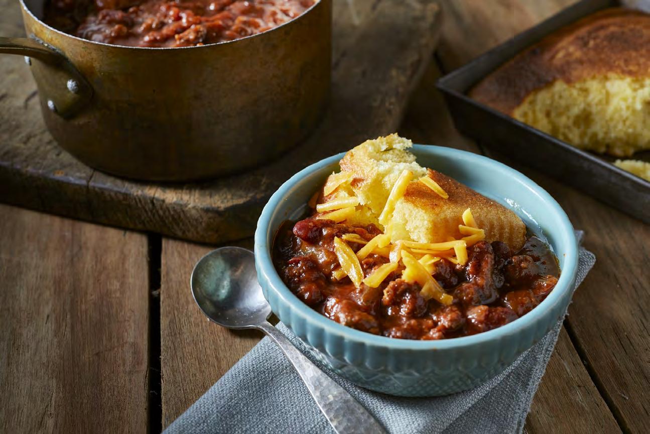 Warm up your menu in minutes with this classic comfort food! Hearty ground beef chili with tender kidney beans and fire-roasted diced tomatoes is seasoned with chili powder, cumin, and other spices.