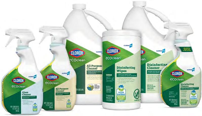 Clorox EcoClean™ is a new product line that is designed for cleaning professionals who seek more sustainable disinfectants and cleaners to help keep their facilities clean and healthy. Clorox EcoClean™ products use EPA Safer Choice and Design Environment certified ingredients and are available in 25% post-consumer recycled plastic. We derstand that disinfecting and cleaning is essential for every facility, so we made each product to provide effective surface coverage when used as directed. Clorox EcoClean™ product line includes a Disinfecting Cleaner, All Purpose Cleaner and Glass Cleaner.
