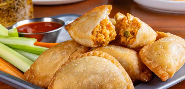 Seasoned chicken meets a bold cayenne pepper sauce in this irresistible Buffalo style chicken filling that is blended with cheeses for the perfect balance of heat and richness. Crisp celery and sweet carrots add a refreshing crunch, capturing the essence of classic Buffalo wings in every bite. Wrapped in a flaky, golden pre-fried dough, this handheld delight delivers the ultimate harmony of spice, creaminess, and satisfying crispiness.