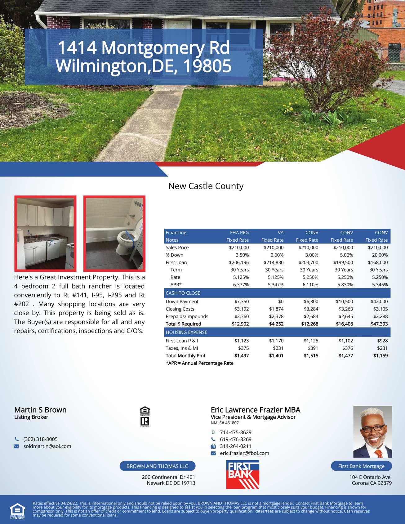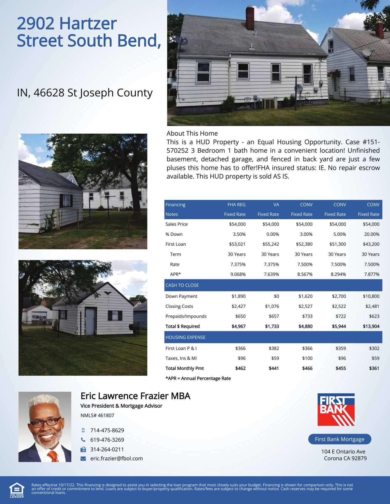 BEDROOMS BATHROOMS SQ. FT PROPERTY ADDRESS 3 1 1,204 3187 Grenfall Rd Norton, Summit County OFFER PRICE: $145,000 PROPERTY GALLERY single family home YEAR BUILT: 1940 TOTAL ROOMS: 6 for more information about this property or to make an offer to purchase please contact a VIP Agent by clicking here: https://www.thepowerisnow.com/vipagent/ or call 800-261-1634 ext 707 ERIC L. FRAZIER NMLS ID: 461807 PHONE: (800) 261-1634 EXT: 703 EMAIL: ERIC.FRAZIER@THEPOWERISNOW.COM PROPERTY CASE NO: 412-622610