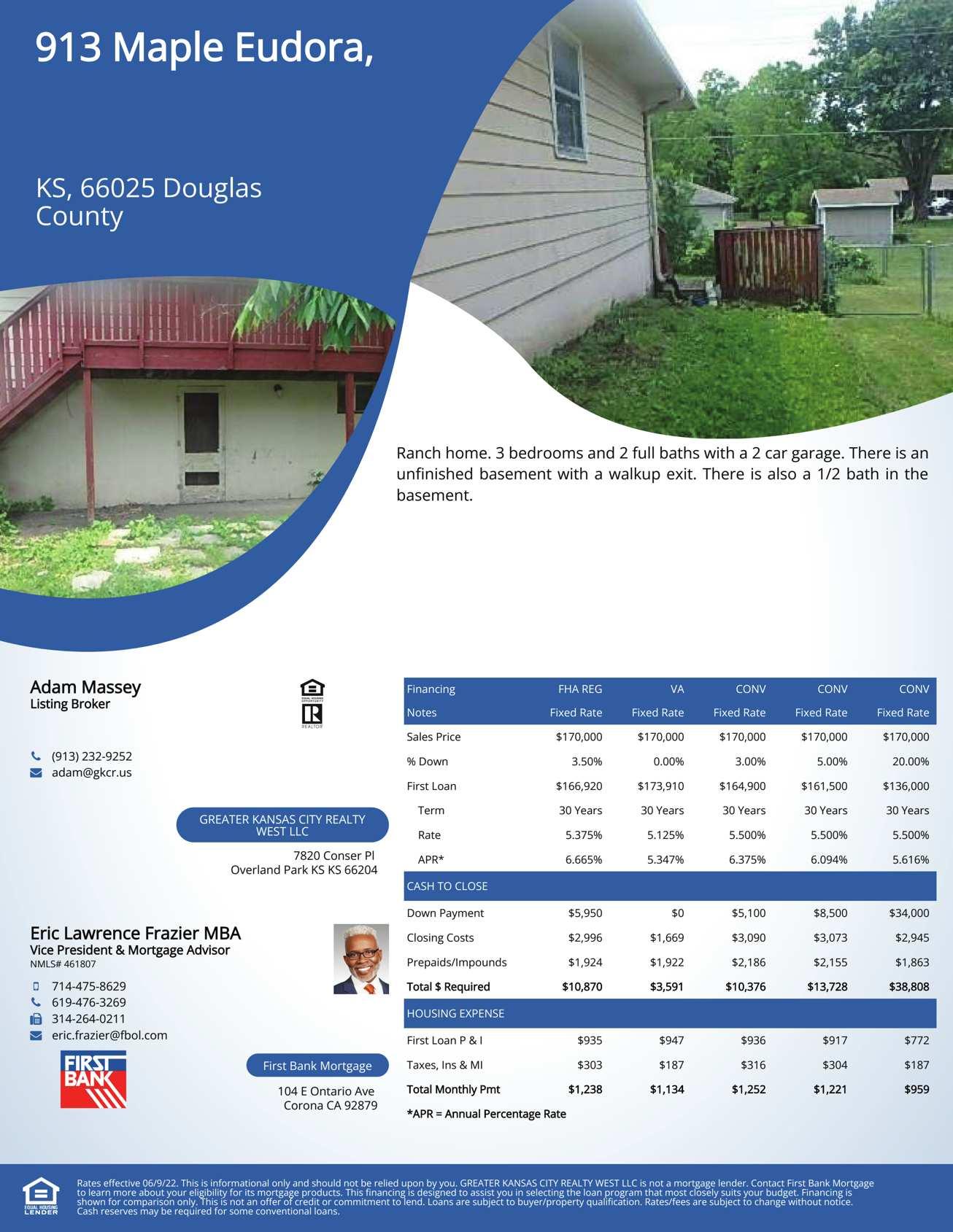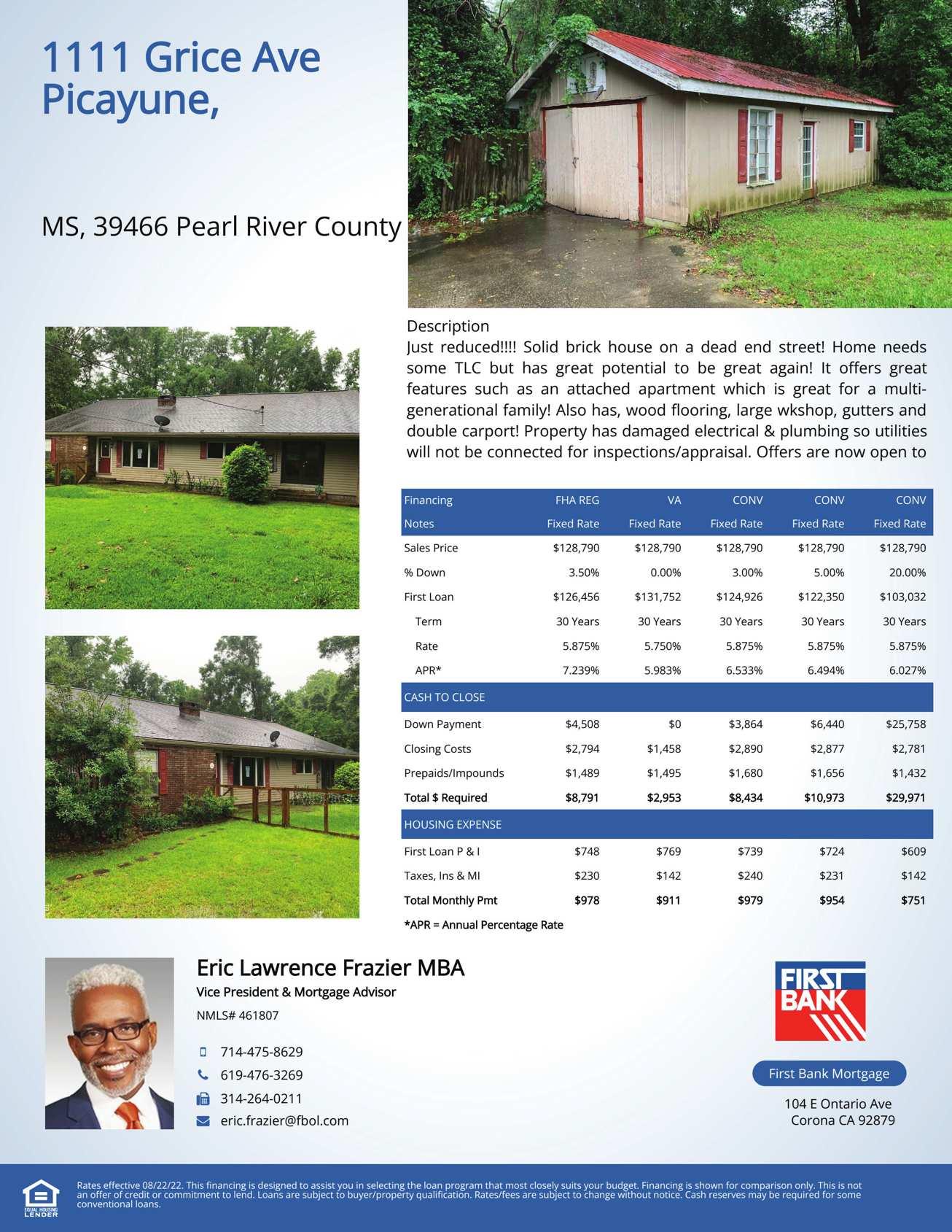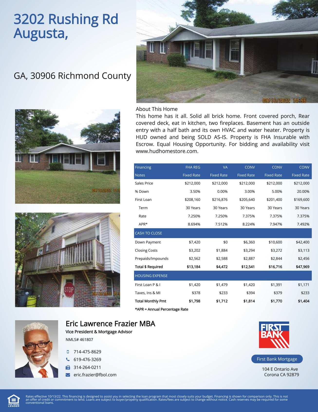 • FHA, VA, USDA and Conventional Loan Financing Options are available.