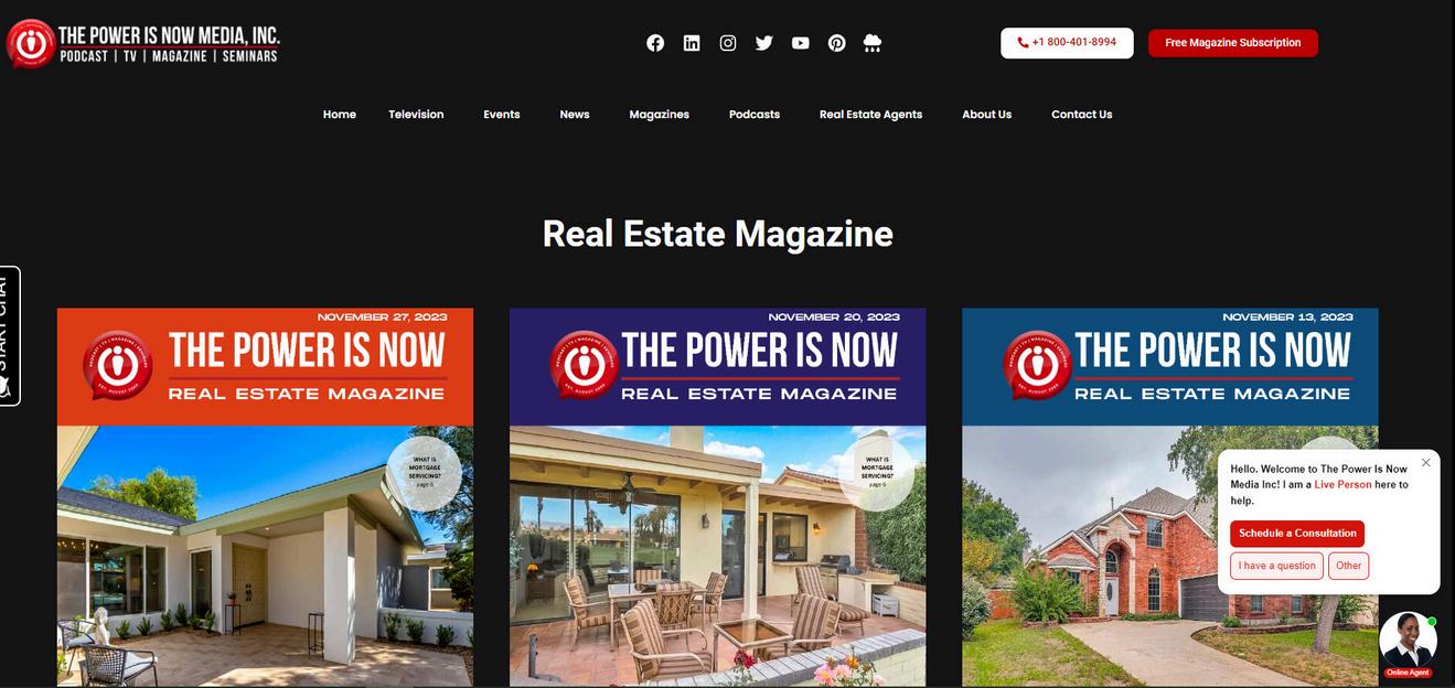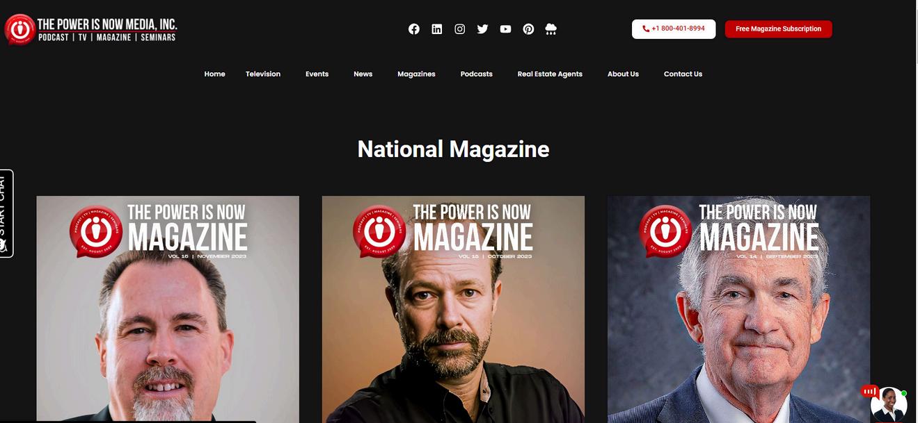 52 Full Page Advertisement of your TV shows about your Market Listings, or educational topics on The Power Is Now TV Network, distributed to Apple TV, Roku TV, Fire TV, and all Smart TVs, and the Power Is Now TV App available on Play store and App Store.