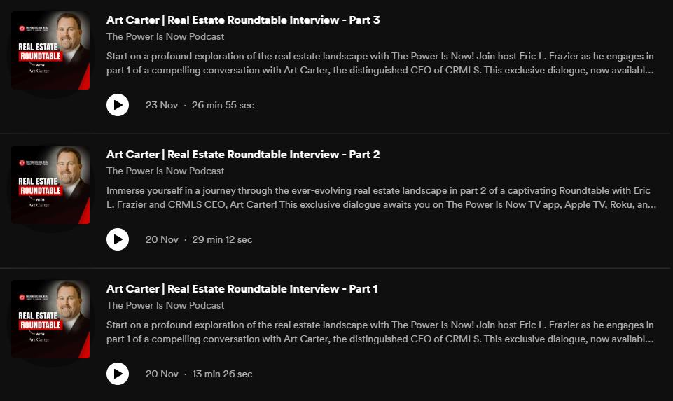 Monthly Listing interviews on the Power Is Now Podcast