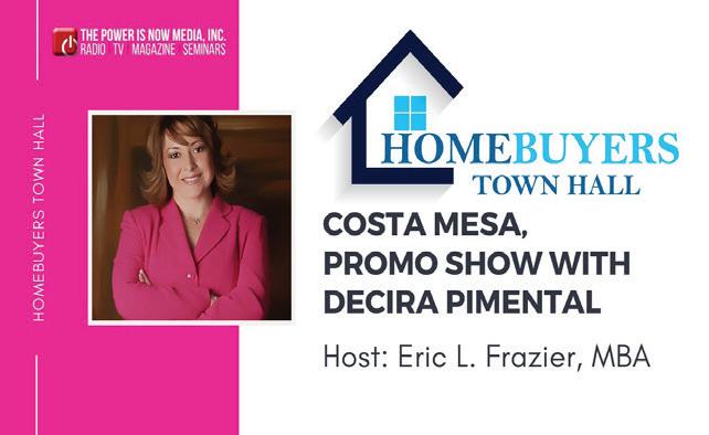 Our newest VIP Agent, Decira Pimental, is joined by Eric L. Frazier, MBA, as they get into what to expect from the Costa Meca Homebuyers Town Hall. Decira Pimental will host the show and she highlights a few things about the Costa Meca area and community.