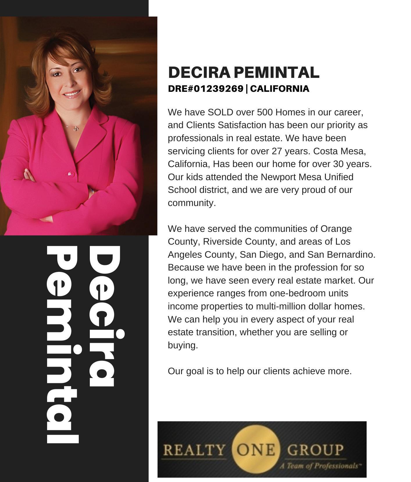 Meet one of newest VIP agents, Decira Pimental of Realty One Group West in Costa Mesa, California. She is passionate about real estate and even more passionate about helping first-time homebuyers achieve their dreams. Watch and listen to her amazing story.