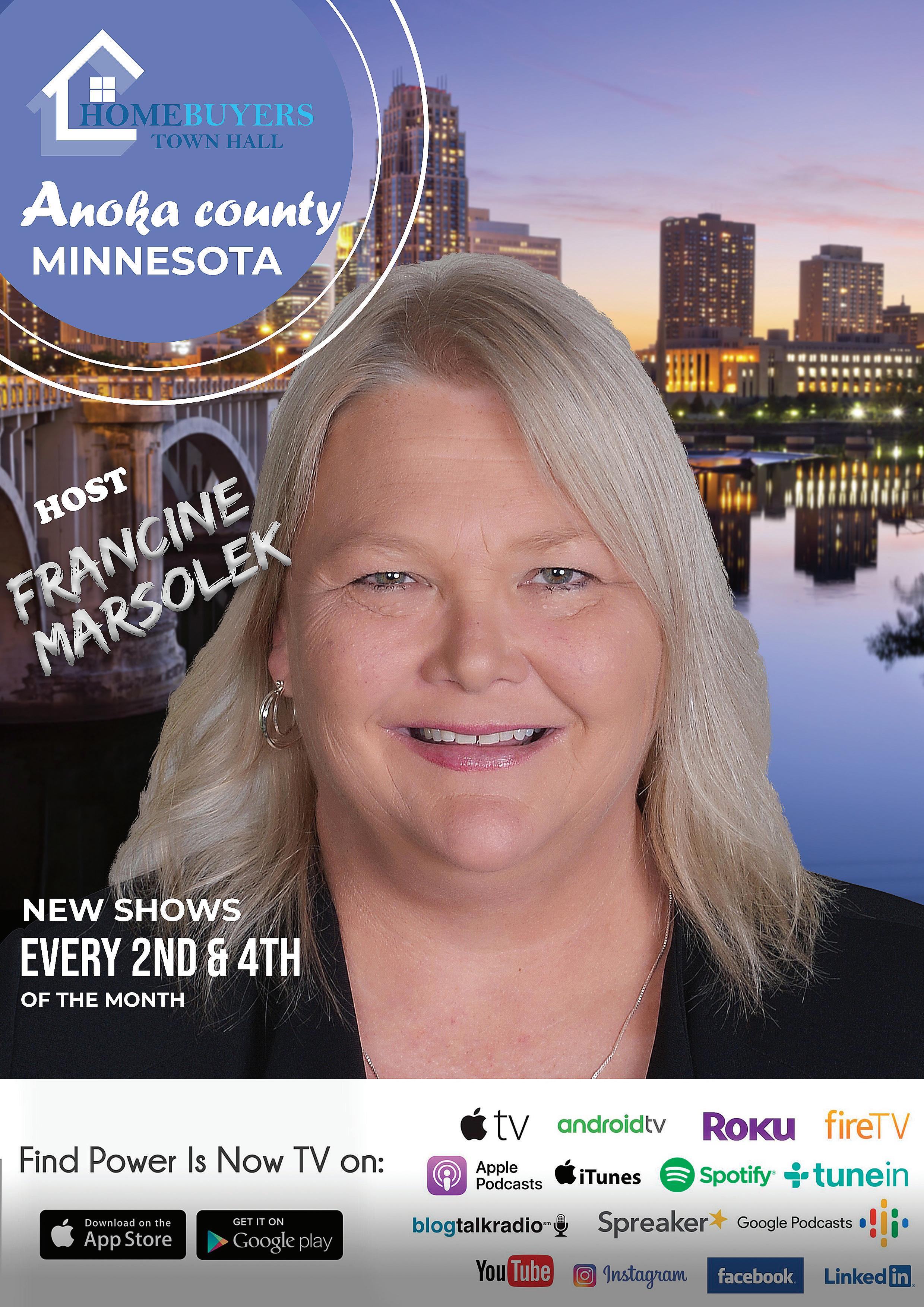 Meet Francine Marsolek, owner and broker of NextHome Metro Real Estate Services in Minnesota. an agent with over 17 years experience in residential real estate services. In this zoom interview with Eric, Francine walks us through her 17 years experience in the field and talk about her new upcoming show; Homebuyer’s Townhall Anoka County, Minnesota on the Power Is Now network.