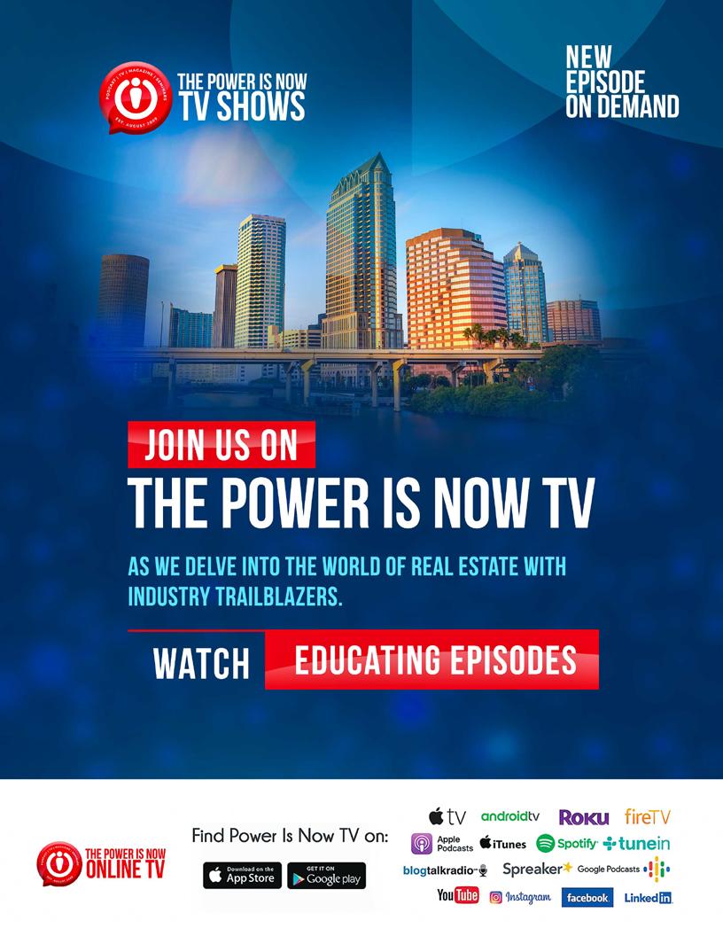 The Power Is Now Media is an online multimedia company founded in 2009 by Eric L. Frazier and is headquartered in Riverside, California. We are advocates for homeownership, wealth building and financial literacy for low to moderate-income and minority communities. We utilize online Radio, online Magazine, online TV and online events to educate and support the American dream of homeownership and financial independence. We are supported by numerous national and state real estate associations and community groups and provides weekly real estate related content to millions of real estate agents and consumers throughout the United States online and by webinars. The Power Is Now Media Inc. corporate office is located at 3739 6th Street Riverside, CA 92501.