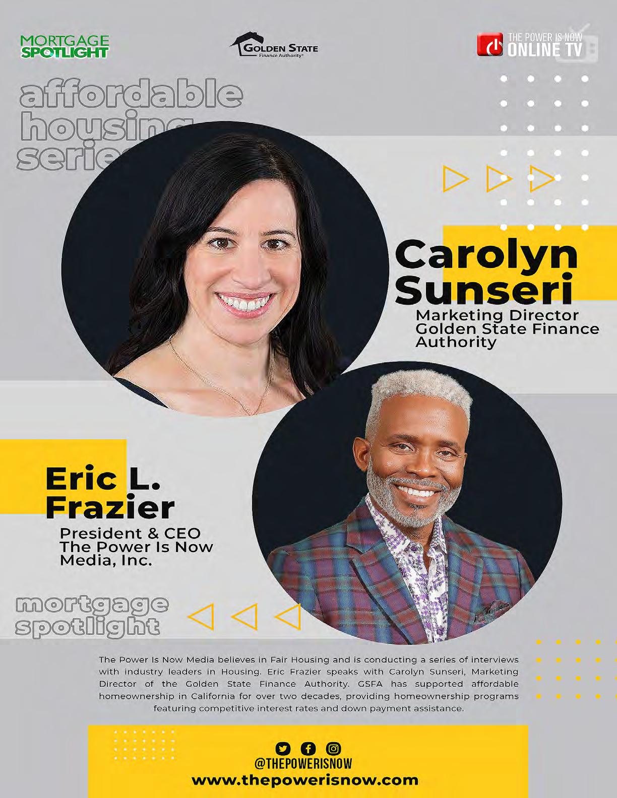 Watch a powerful testimony of the Jefferson Family of their journey to owning a home. Also present in the show are Eric Frazier, the president and founder of the Power Is Now Media and a mortgage advisor with First Bank and Carolyn Sunseri, the Marketing Director of the Golden State Financial Authority.