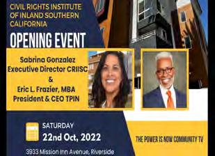 Join Eric L. Frazier, MBA, on The Power Is Now Community TV as he interviews the new Executive Director of the Civil Rights Institute of Inland Southern California (CRIISC), Sabrina Gonzalez. They discuss her new role and the opening of CRIISC at Missions Heritage Plaza.
