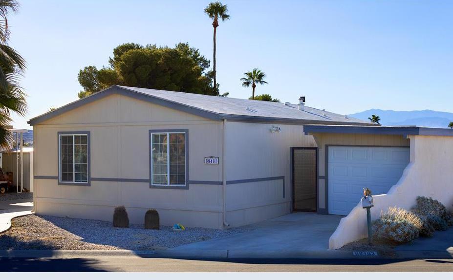 This beautiful, well maintained 3 Br/ 2 Ba manufactured home in Desert Crest Country Club only seasonally lived in! You walk into this home and you feel comfortable! The master bedroom has sliding glass door that leads to your own patio overlooking the backyard and the San Jacinto Mountains to the west! Two other rooms for entertaining family or guests. Nice low maintenance private backyard with lovely water feature! Detached garage for more storage and vehicle storage. Desert Crest Country Club, a 55+ senior, or ‘active adult’, own-your-own-land subdivision.