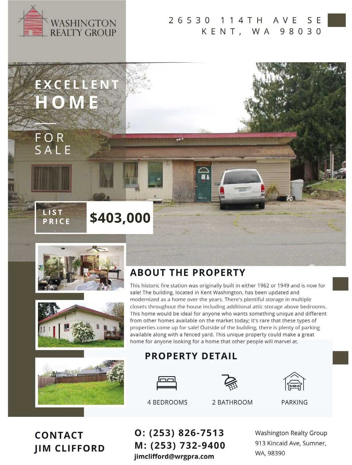 L I S T P R I C E E X C E L L E N T H O M E F O R S A L E $ 2 9 9 , 0 0 0 1 1 7 E L D R E D G E A V E N W , O R T I N G , W A , 9 8 3 6 0 A B O U T T H E P R O P E R T Y P R O P E R T Y D E T A I L 1 B E D R O O M 1 B A T H R O O M C O N T A C T J I M C L I F F O R D O : ( 2 5 3 ) 8 2 6 - 7 5 1 3 M : ( 2 5 3 ) 7 3 2 - 9 4 0 0 jimclifford@wrgpra.com Washington Realty Group 913 Kincaid Ave, Sumner, WA, 98390