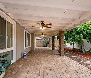 Come fall in love with this gorgeous, fully remodeled home located in the highly sought-after Gated Community of Scottsdale Ranch. This home features 3 beds, 2 baths, 2 car garage & Community Pool right outside your front door that is perfect for AZ summers. No expense was spared on this entertainer’s dream home and it shows! From Vaulted ceilings, New Dual Pane Windows, Sliding Patio Door, Paint, Tile Flooring, Carpet & Fixtures throughout! Stunning Eat-in Kitchen with Dark Wood Cabinetry that soft closes, Quartz Counters, Tile Backsplash, & Stainless Steel Appliances. Gorgeous New Wet Bar with Sink & Wine Cooler for entertaining guests. Owner’s suite boasts a generously-sized Walk-in Closet, Ensuite Bathroom w/ Dual Vanity, Stand-Alone Tub & Large Shower with Dual Shower Heads!