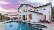Stylish & modern in a quaint Gilroy community nestled near the hills! Step inside this polished residence through an elegant foyer with pristine floors, warm neutral tones and a cozy front living space. Continue past a large dining area, into a huge kitchen that’s a chef’s dream, with large central island, breakfast bar, endless counter space & cabinetry, trusted appliances & view of the rear yard. Step outside into a backyard paradise, complete with stunning pool & spa, patios & lush mature landscaping. First floor bedroom is perfect for visitors. A newly updated, luxurious bathroom is just steps away. An additional loft upstairs allows for flexible space. Once upstairs, a spacious ensuite is found featuring an amazing spa-like bathroom, soaking tub and huge shower.