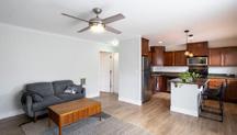 Sunny & stylish upper-level condo in a tree-lined Willow Glen community! This spacious 1 BD / 1 BA unit is situated for optimal privacy with just one shared wall. Inside, a bright, open living space is freshly updated with all new flooring & fresh paint, alongside dual pane windows & sliding glass doors leading to your personal balcony. The contemporary kitchen features custom wood cabinetry, granite countertops, stainless steel appliances, and a center island/ breakfast bar. Down the hall, the large bedroom includes a walk-in closet with a washer/dryer, and an adjacent full bathroom with a combo shower/ tub. Assigned carport parking for residents, as well as a designated additional storage room.