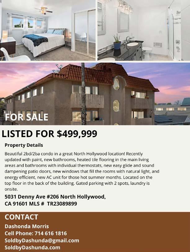 HOW TO RETIRE WHEN YOU STILL HAVE DEBT page 6 THE POWER IS NOW REAL ESTATE MAGAZINE MAY 24, 2023 FEATURED LISTING! 5031 Denny Ave APT 206, North Hollywood, CA 91601v Listing Agent: DaShunda Morris DaShunda Morris Realtor